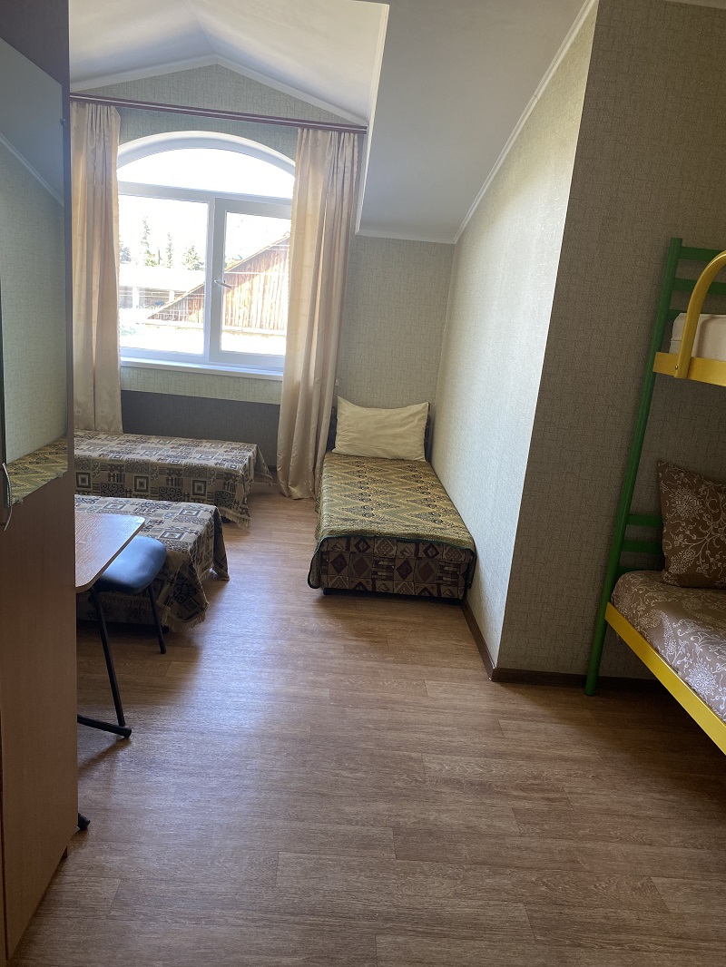 Удобные, светлые номера с несколькими кроватями. Приятная цветовая гамма номеров, сделает отдых спокойным и приятным. Санузлы и душевые общие по этажу. Также имеются общие кухни с необходимой посудой.